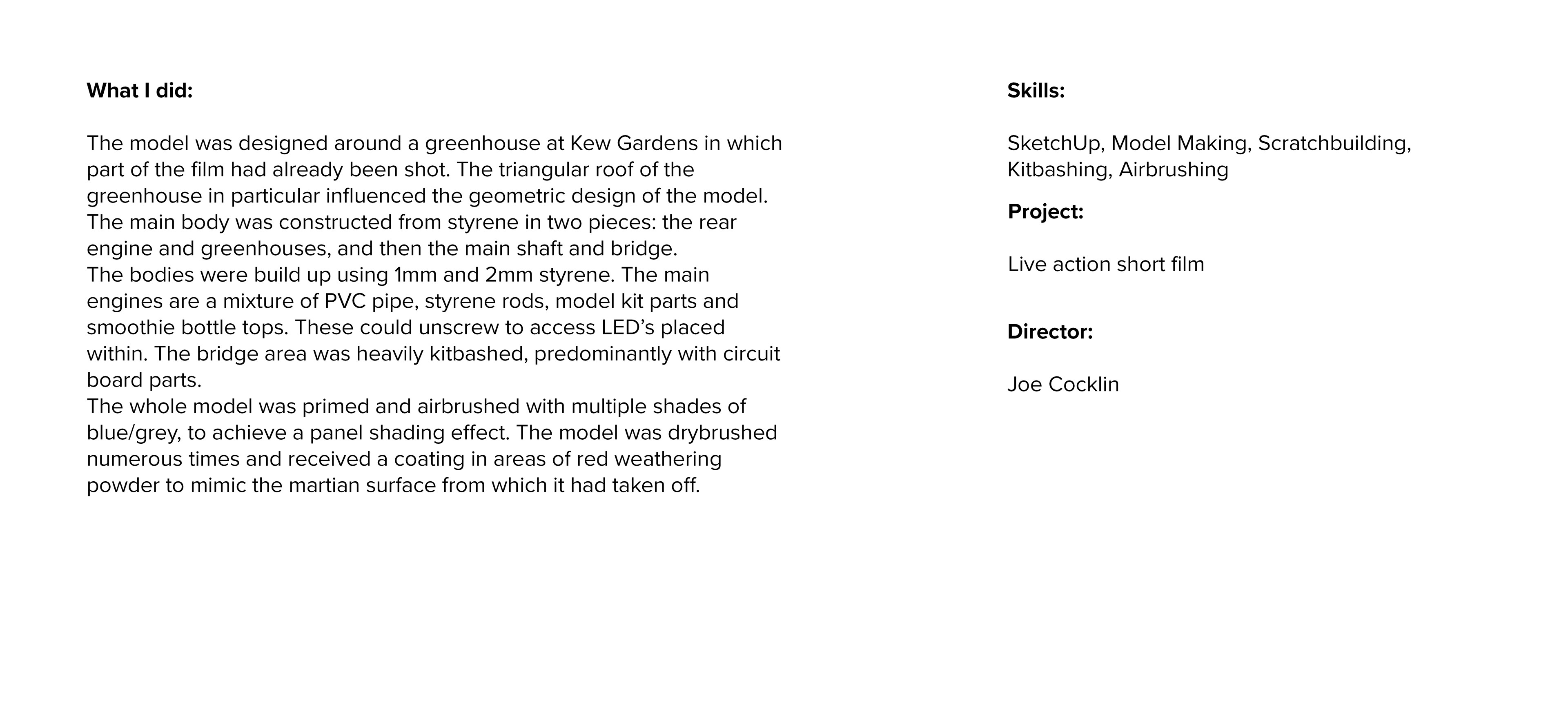 An LCC graduate live action sci-fi film for which I created a 2' model spaceship.